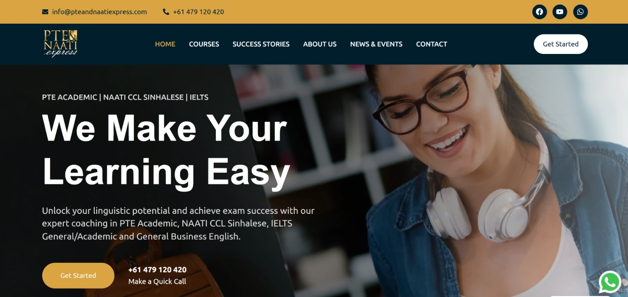 We built a clean, modern website for PTE & NAATI Express, an Australia-based test preparation provider, with the goal of creating a professional yet approachable design. The site balances clarity and simplicity, highlighting course information, student success stories, and strong calls to action, while ensuring smooth navigation for learners across the globe.